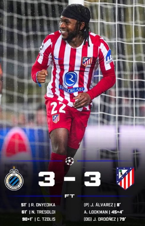 2025-26賽季歐冠1/8決賽附加賽首回合馬德裏競技客場3比3比利時勁旅布魯日,這場比賽也是夠冷的, 不過次回合回到主場還是有一定優勢的,隻是防線的問題需要解決。令人擔憂的是,這場平局延續了馬競近期的低迷態勢,球隊各賽事近4場僅取得1場勝利,攻防兩端的諸多問題被無限放大,兩周後的次回合較量,西蒙尼的球隊絕對不能先失球。