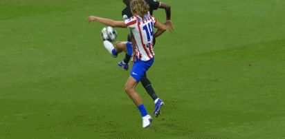 第14分鍾,範德芬失誤滑倒,格列茲曼單刀破門,馬競2-0!