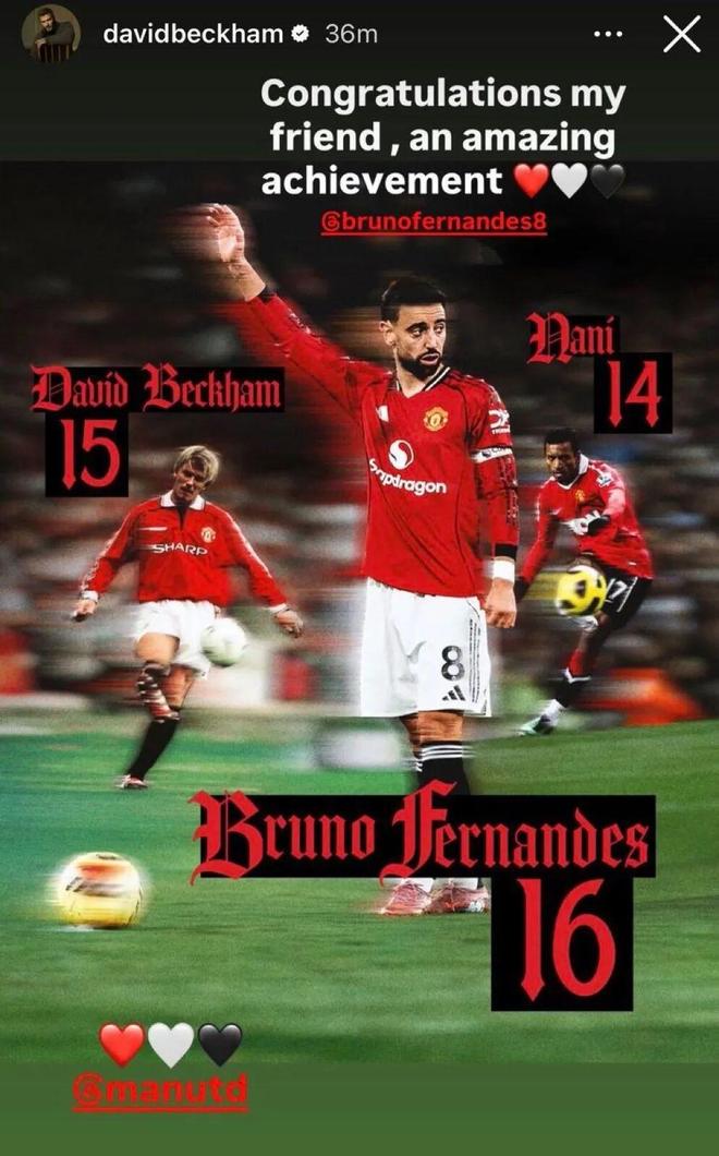 貝克漢姆恭喜B費打破自己的助攻記錄:恭喜你我的朋友,這是一項很棒的成就