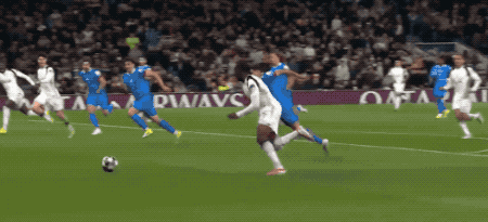 第35分鍾,熱刺打出行雲流水的進攻,西蒙斯的傳球極為絲滑,門前兩人包抄形成空門,特爾居然選擇了自己射門。