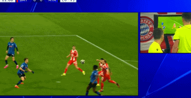 第23分鍾,格雷羅左路傳中,凱恩禁區內淩空掃射,斯卡爾維尼手臂擋出,裁判回看VAR後判罰點球。