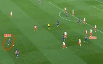 把鏡頭放大之後可以看得很清楚,貝爾納爾在坎塞洛接球的一瞬間,明顯處於越位位置。對方想要造越位,所以向前跑,沒想到貝爾納爾同樣緊緊跟著跑了回來。
