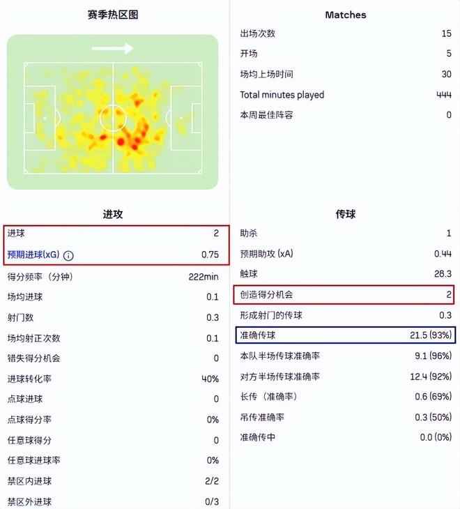 要知道他的預期進球才0.75,不得不說,貝爾納爾在門前是真的有點東西。