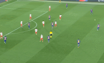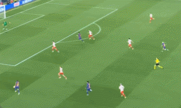 弗裏克的戰術體係下,萊萬的價值是巨大的,通過這名中鋒的大範圍遊動,可以帶來不對稱的前插打擊空間。這一次就是中衛馬丁和萊萬連線,然後貝爾納爾又前插了。