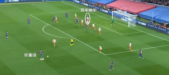需要特別注意的是,貝爾納爾的射門還真的是有點說法的,亞馬爾持球內切,佩德裏主動接應,對方就會放鬆對其他球員的盯防。貝爾納爾本身也不是很有名氣,看上去腳下動作又偏慢,被對方忽視也是自然而然的結果。