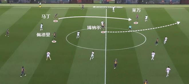 關鍵點還是因為有了佩德裏,通過後者拖後,一來保證傳球和推進的穩定性,二來也能做好攻防轉換時的選位,這樣一來,貝爾納爾利用自己閱讀比賽和洞察空間的能力適時前插,可以起到不錯的效果。