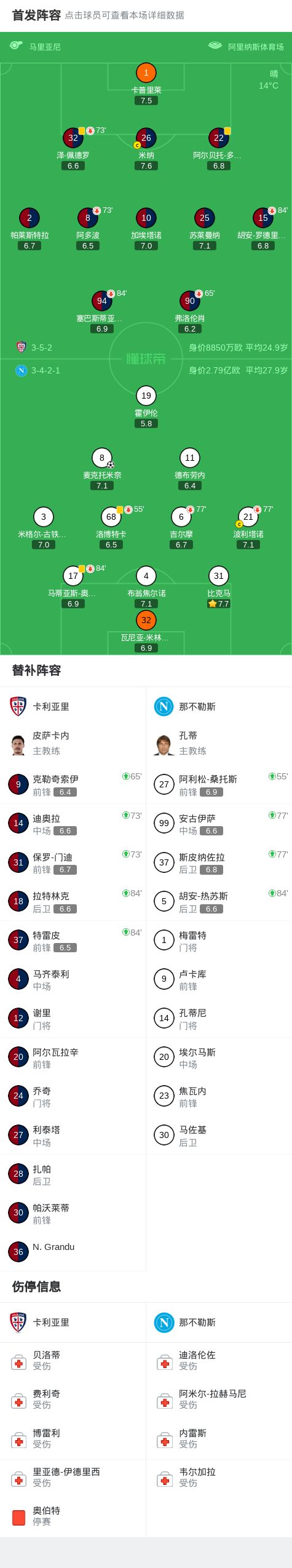 北京時間3月21日意大利足球甲級聯賽第30輪,卡利亞裏主場迎戰那不勒斯。比賽中那不勒斯球員麥克托米奈打入製勝球,最終卡利亞裏0-1不敵那不勒斯。