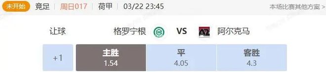 因此綜合考慮,本場阿飛看好格羅寧根主場不敗。競彩選擇讓球玩法勝,預測比分1:1或2:1。