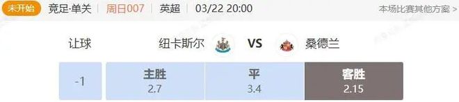 雙方本賽季首次的德比戰,桑德蘭1:0主場取勝全場比賽下來雙方射門次數都寥寥無幾,並且全場也隻有桑德蘭創造了一次絕佳破門的機會,說明紐卡這邊即使托納利和吉馬良斯在,也很難去破了桑德蘭的密集防守。那麽本場尤其托納利可能還不能回歸,要破桑德蘭的防守可能會更難。讓步方麵給到紐卡三星支持,可能大多朋友會認為和首次交手力度一致比較合理,但是我認為根據目前的實力定位來看本場的支持力度是不足的,因為當時首回合交手時,桑德蘭的黑馬成色是還沒有褪去的,所以理應獲得更高的支持,包括本場部分評審團是從4星降下來的。