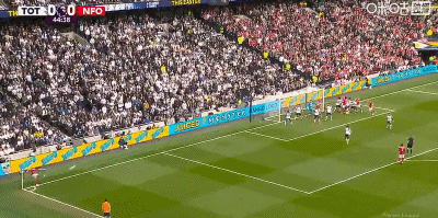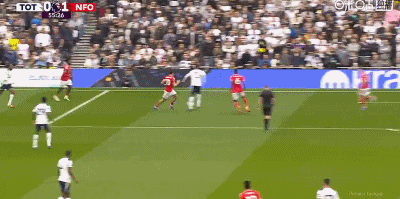 第45分鍾,伊戈爾-熱蘇斯角球中頭球破門,森林1-0領先熱刺!