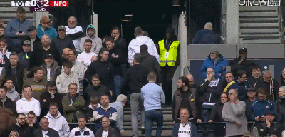 第62分鍾,0-2落後保級形勢嚴峻,現場熱刺球迷麵無表情陷入無語