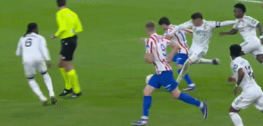 易邊再戰,馬競進行調整,希門尼斯出戰,勒諾爾芒被換下。第50分鍾,卜拉欣-迪亞斯禁區內變向過人,漢茨科下鏟犯規送點。第52分鍾,威尼修斯操刀命中,皇馬扳平,1-1!