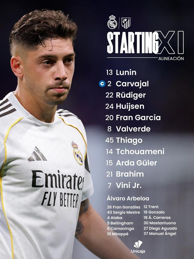 - 皇馬vs馬競:維尼修斯、巴爾韋德首發,格列茲曼、胡利安-阿爾瓦雷斯出戰